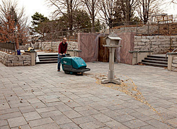●此款性能卓越,經(jīng)久耐用,且具有灰塵控制功能的手推式掃地機,可同時用于清掃惡劣環(huán)境中的狹窄和或?qū)挸? 間