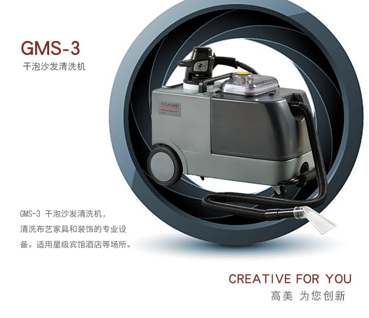 GMS-3干泡沙發(fā)清洗機,融入專利發(fā)泡技術(shù)(ZL032212437 ),泡沫制造,電動刷洗、真空抽吸三合一,是清洗各種布藝家具和裝飾的專業(yè)設(shè)備。配用清潔劑:干泡地毯水,地毯除漬劑,化泡劑。